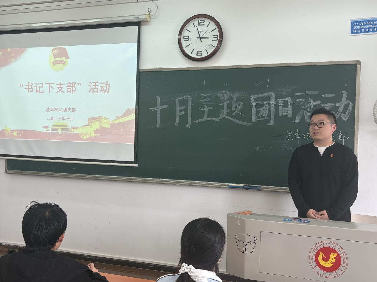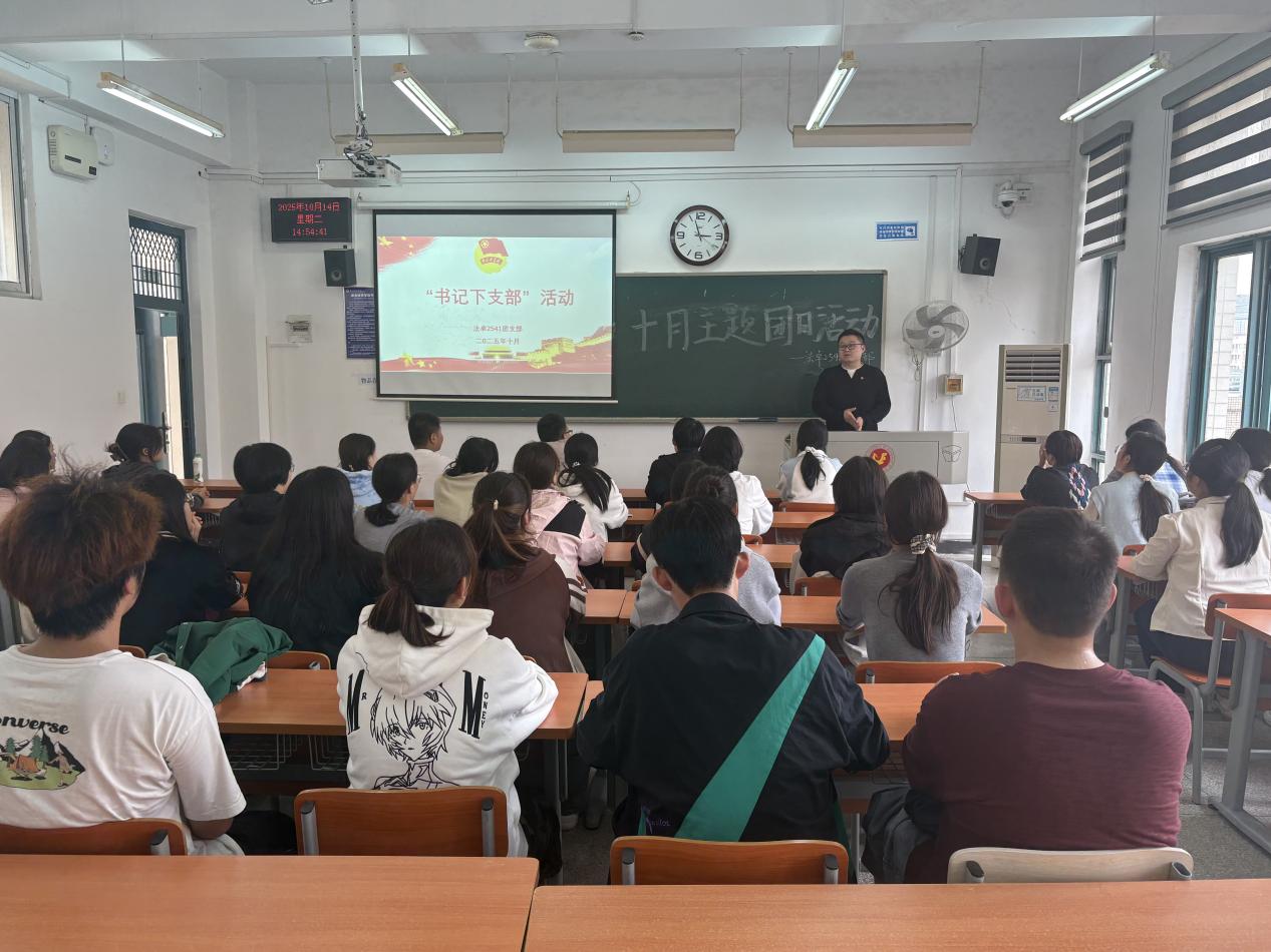 本网讯(通讯员:王逸晨)2025年10月14日,法学院法卓2541团支部举办了“书记下支部”主题团日活动。活动邀请学院团委书记司马子鸣担任主讲。