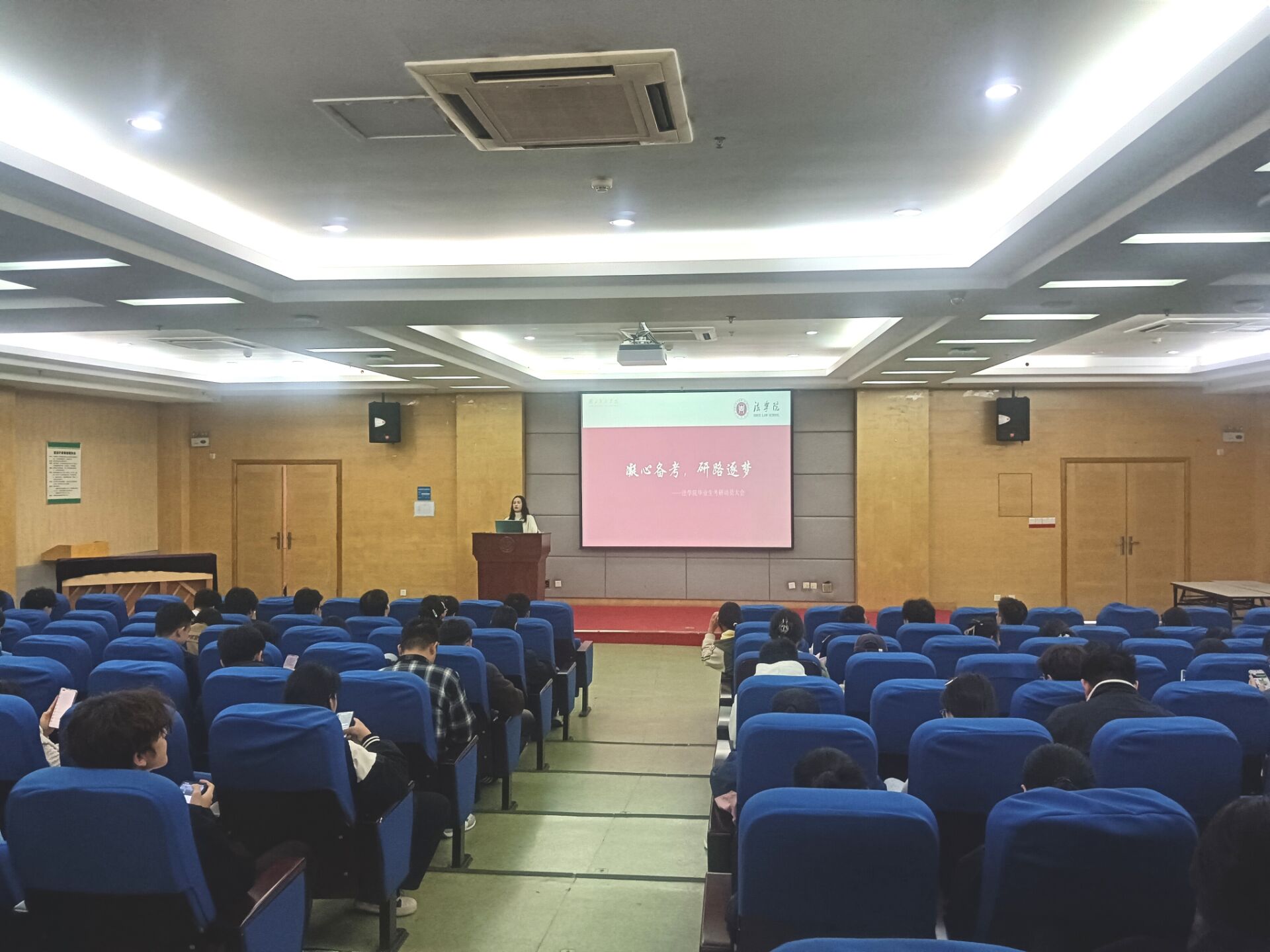 会议伊始,叶老师发表动员讲话。她首先肯定了同学们大学四年来的勤勉付出与不懈努力,并寄语大家志存高远、脚踏实地,以持之以恒的毅力迎接职场挑战。随后,叶老师结合宏观就业态势与学院近年就业实况,系统梳理了从确定行业、面试准备到投入工作的全流程策略,条分缕析,层层深入,为同学们指明了清晰的行动路径。