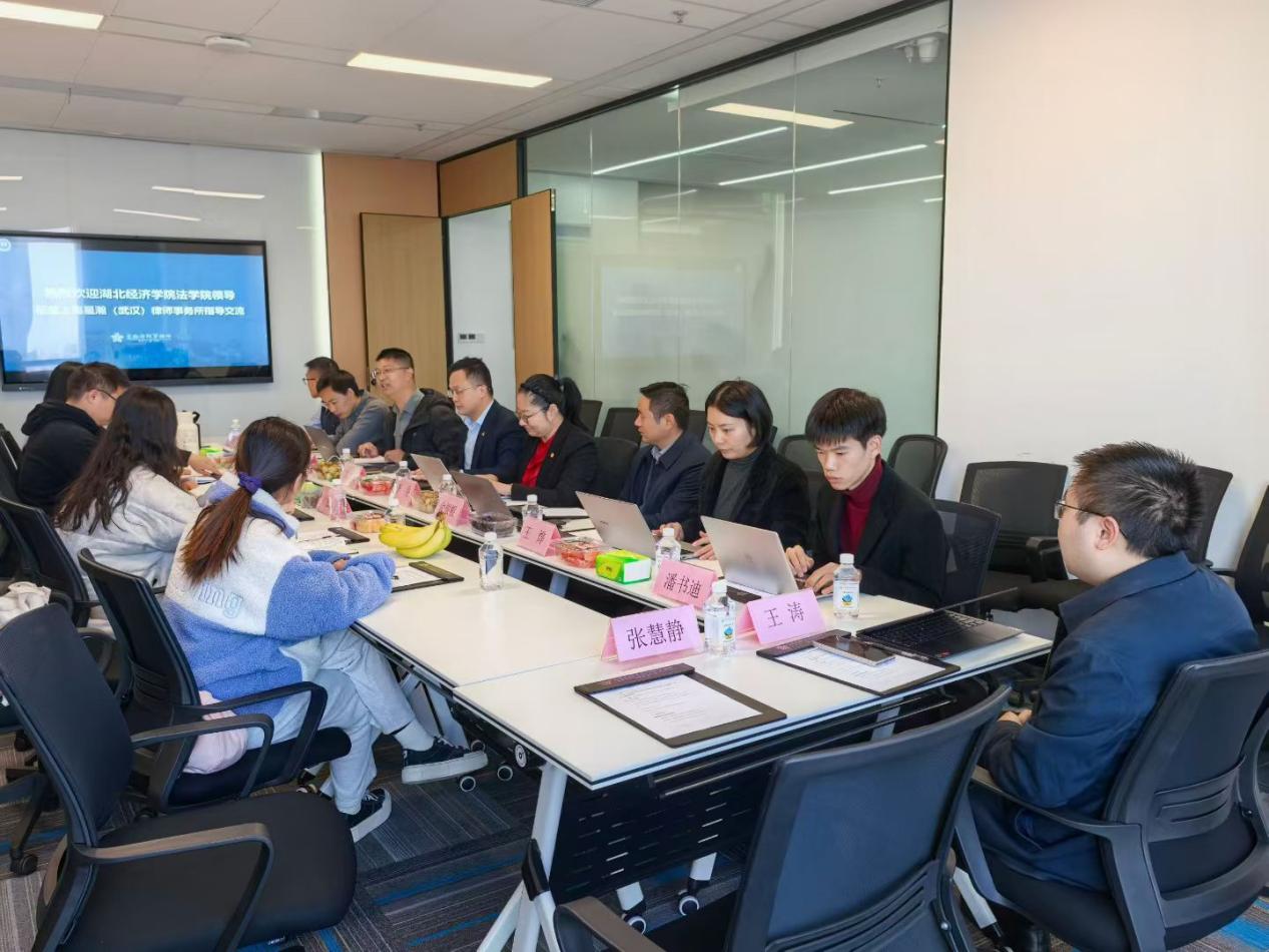 本网讯(通讯员:罗千千)2025年11月19日,学院党委副书记钟彦姝带队赴上海星瀚(武汉)律师事务所,开展“青年法律人才培养、校所实习就业合作”主题访企拓岗活动,学生党总支书记叶雅安、法学院团委书记司马子鸣及学生代表一同前往。上海星翰(武汉)律师事务所主任沈大力,市场总监李秀,合伙人刘曙、余根根、万然、王烨、朱忠良、王涛、潘书迪,湖北经济学院法学院研究生、上海星翰(武汉)律师事务所实习生张慧静出席。