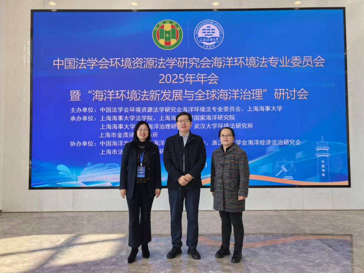 本网讯(通讯员 王思凡)2025年11月23日上午9点,中国法学会环境资源法学研究会海洋环境法专委会2025年年会暨“海洋环境法新发展与全球海洋治理”研讨会在上海海事大学(临港校区)召开。我院院长王腾以及环境法学科团队罗文君、范锐敏参会。