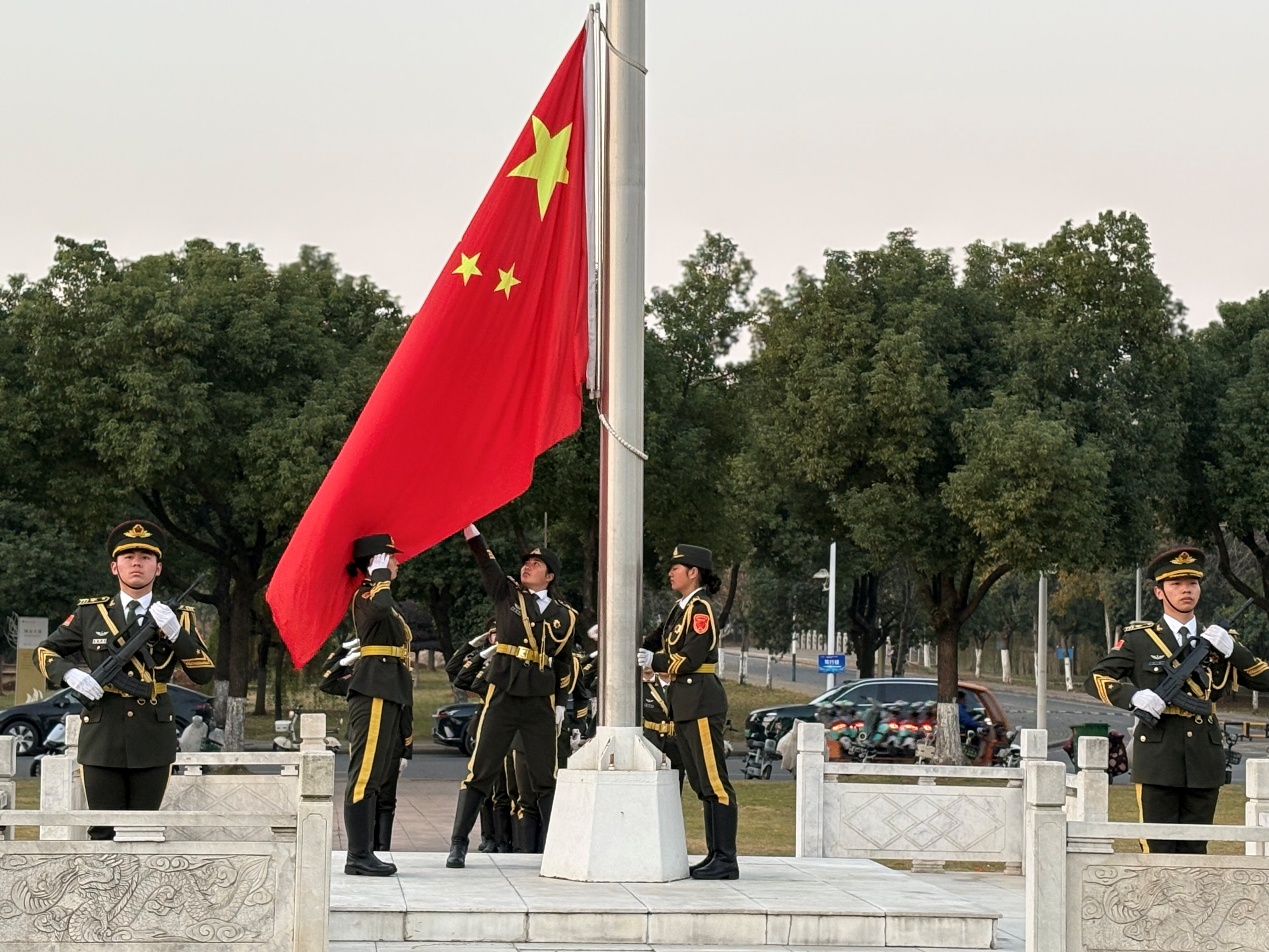 仪式伊始,国旗护卫队迈着铿锵有力的步伐护送国旗入场。在雄壮的国歌声中,五星红旗冉冉升起,全体师生庄严肃立,行注目礼,表达对祖国的崇高敬意。