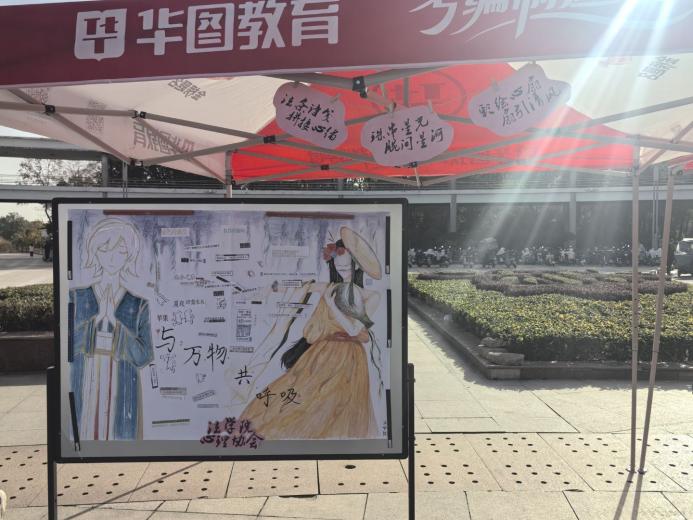 活动面向全校师生开放,现场气氛温馨而活跃。我院大学生心理协会精心设计了三个沉浸式体验项目:“腕间心河·珠串心光”、“手绘折扇”与“冬日法条拼贴诗”,将艺术创造、心理表达与法学专业特色巧妙融合,吸引了大量同学积极参与。在“腕间心河·珠串心光”区域,同学们认真挑选各色珠子,依据此刻的心绪或期许,将其串联成独一无二的手链或挂饰。“手绘折扇”区则准备了画扇与颜料,同学们在素白的扇面上填色,素扇摇身一变成为色彩鲜艳的画扇。最具专业特色的“冬日法条拼贴诗”活动,将法律语言的理性与诗歌艺术的感性创造性结合。同学们把废旧文书中的法言法语剪成字词,再重新拼贴成短诗。严肃的专业术语在全新语境里相遇,既保留了法条的理性,也生发出关于生活、情感与社会的温柔想象,让纸张在二次生命中被重新阅读。这一过程不仅是对情绪的释放,也是对专业知识的趣味再生与思考。