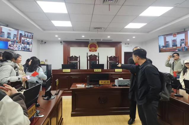 活动伊始,我院学生在法官引导下,走进法院执行局,有序参观法官办公区域,目睹案宗整齐堆叠、法官专注履职的工作场景,直观感受司法工作的庄重与严谨。