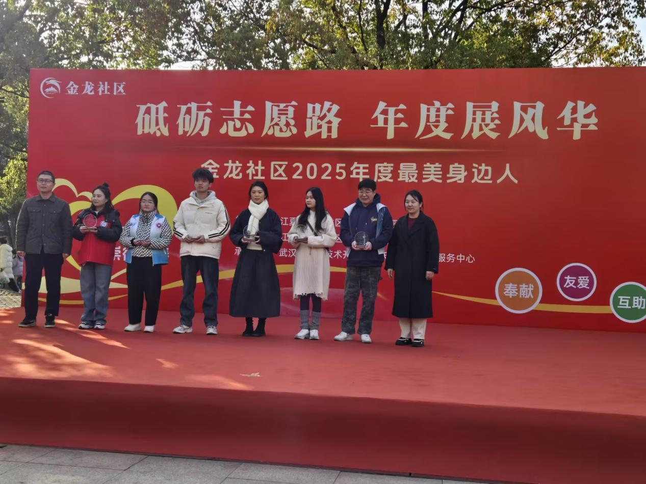 本网讯(通讯员:余奕杉)12月14日,金龙社区举办2025年度“最美身边人”颁奖仪式,表彰在社区志愿服务中表现突出的集体与个人。我院青年志愿者协会凭借长期以来在社区服务中的持续奉献与积极协作,荣获社区表彰。