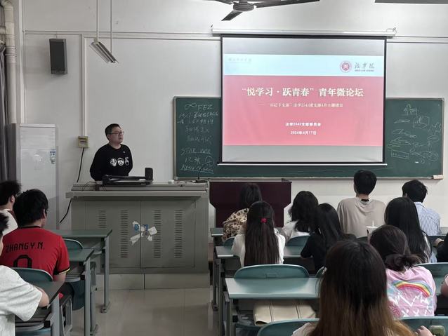 本网讯(通讯员 王煦坤)2025年4月17日,法学2343团支部举办“悦学习·跃青春”青年微论坛暨“书记下支部”主题团日活动。活动聚焦社会实践与“双考”(法律职业资格考试、研究生入学考试)备战,助力学生生涯规划。法学院分团委书记、辅导员司马子鸣主持,全班同学参与。