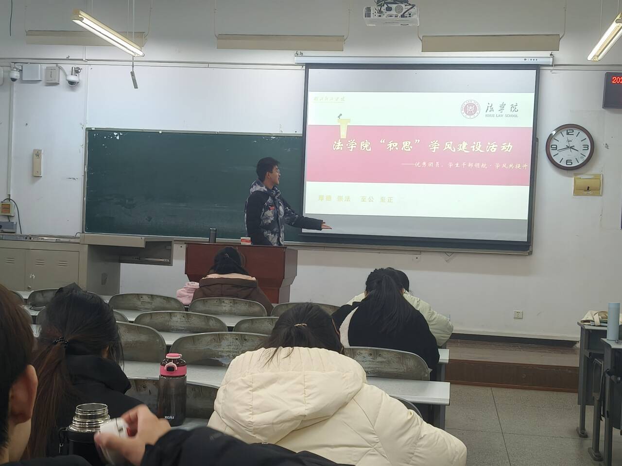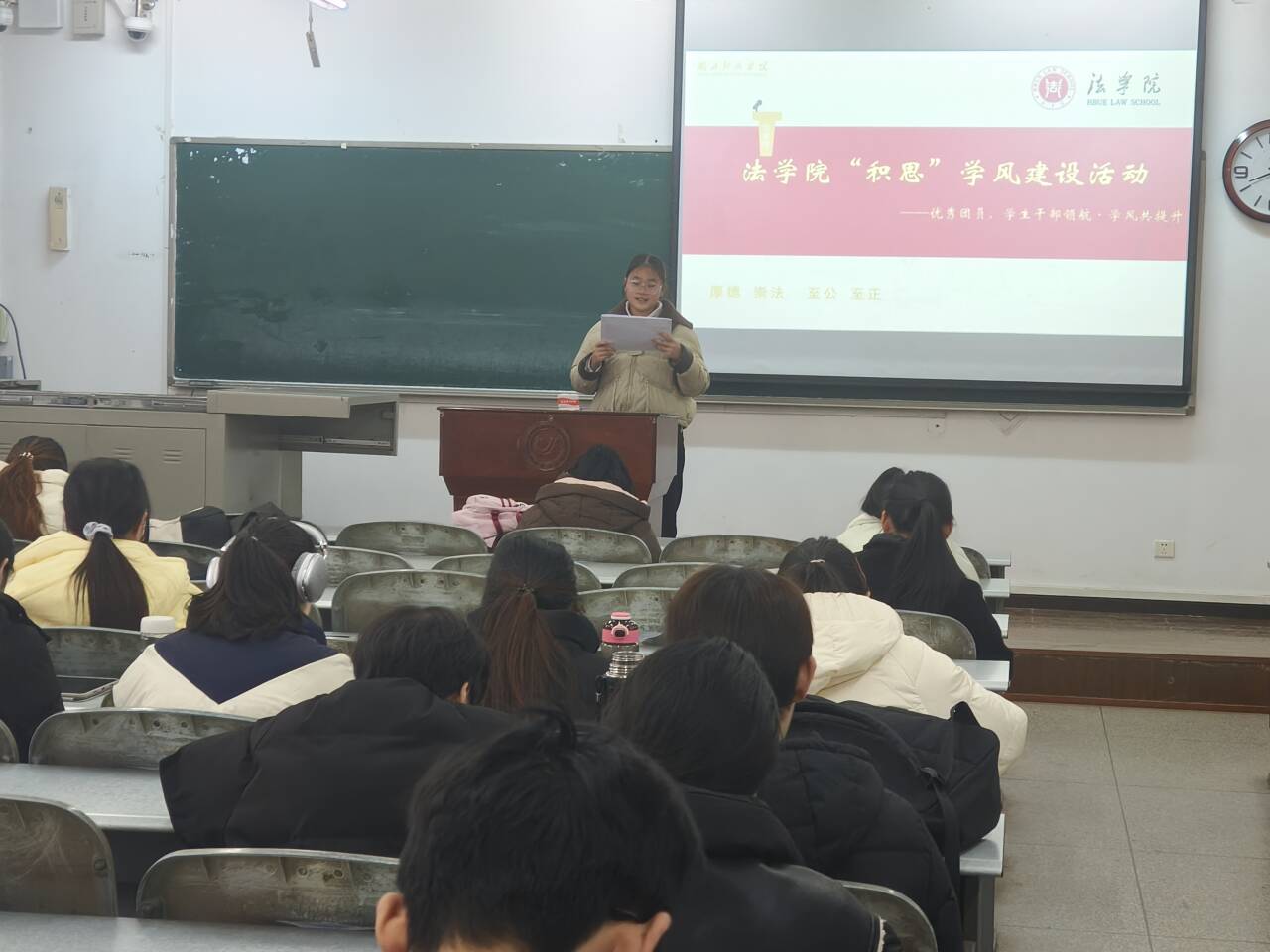 本网讯(通讯员:黄鑫奕)为精准赋能班级学风建设,发挥优秀学子的示范引领作用,让“勤学、善思、笃行”的学风理念扎根班级,近日,法学院“积思”学风建设系列活动走进法学2441班,以“优秀团员、学生干部领航·班级学风共提升”为主题开展专场分享会。优秀团员代表黄鑫奕、黄丹毅,获得藏龙学子奖学金的班级学习委员李本强倾情分享,法学2441班全体同学参与活动,在面对面交流中汲取成长智慧,凝聚班级共进力量。