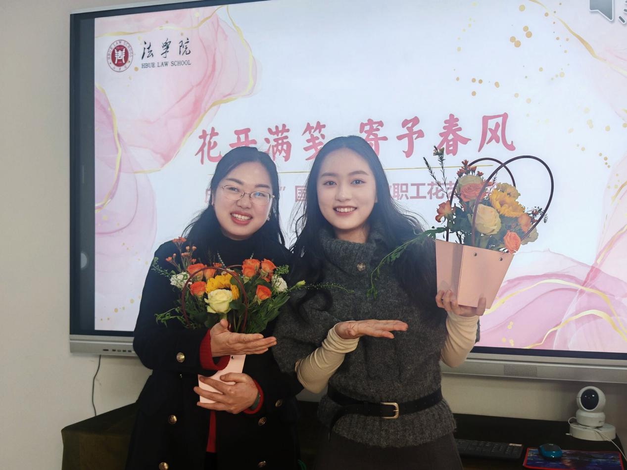 (本网讯 唐亚辉、赵亚文)3月5日下午,法学院工会在知行楼403会议室举办“花开满笺,寄予春风”庆祝“三八”国际劳动妇女节女教职工活动。学院女教职工齐聚一堂,在花香氤氲中体验插花艺术,在交流互动中凝聚奋进力量。