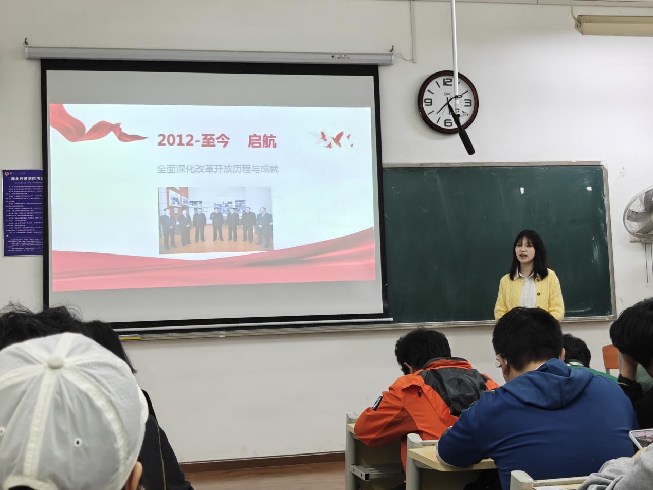 本网讯(通讯员:唐子琪)3月29日晚,“经叹号”青年宣讲队队员杨莘月面向法学2442团支部,开展“改革开放 我们的时代印记”主题宣讲。