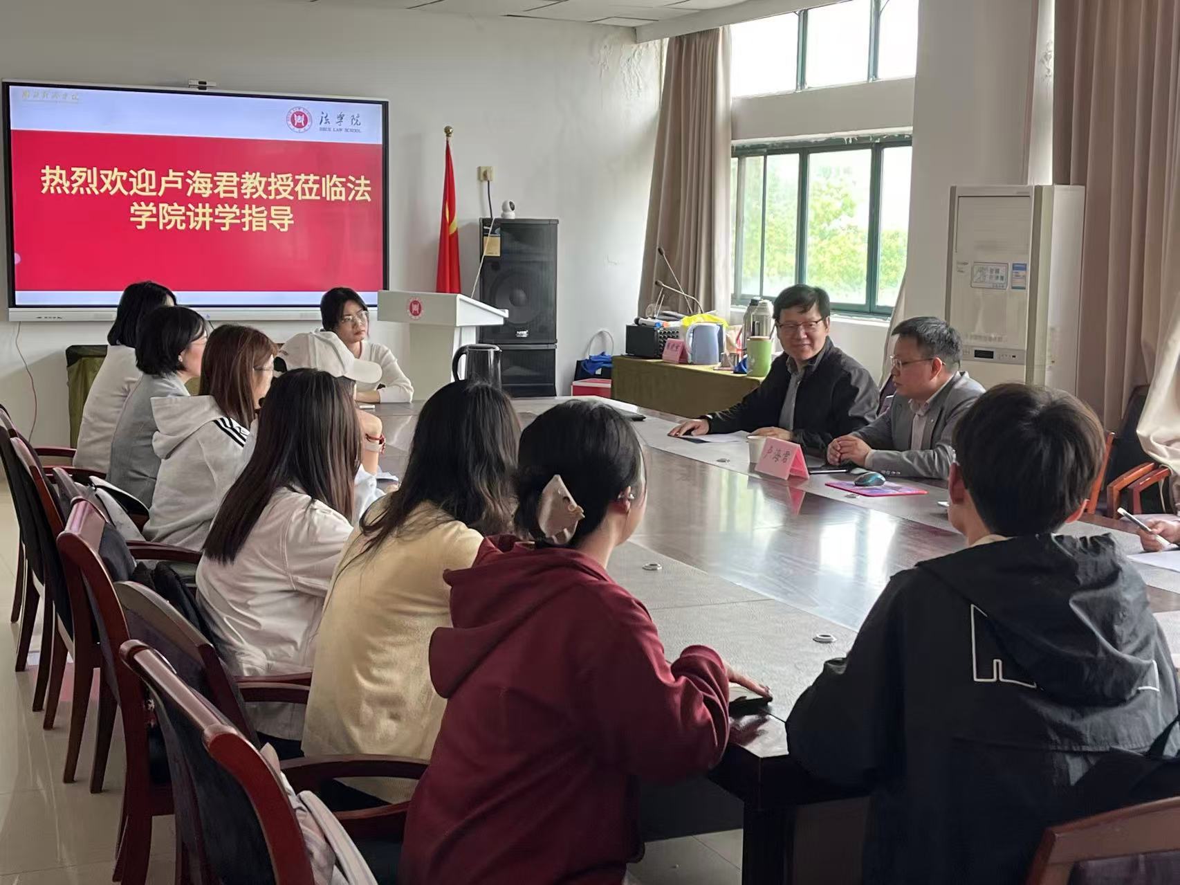 2026年4月13日,对外经济贸易大学法学院卢海君教授应邀莅临我院,为师生带来题为“数智出版中的版权问题及治理”的学术讲座。讲座由王腾院长主持。部分教师、法律硕士、数智法治实验班法学本科生,以及来自江汉大学、中原工学院的校外教师参加本次讲座,并就讲座主题进行深入探讨。